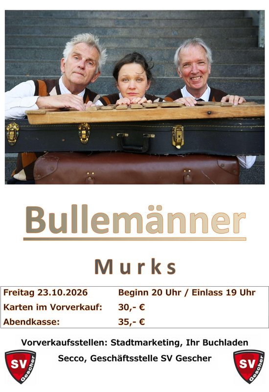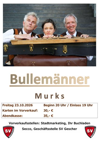 Die Bullemänner - zu wahr, um schön zu sein.Lassen Sie sich in die unglaubliche Welt des westfälischen Kontinents entführen und erleben Sie höchste Fabulierkunst, überwältigende Schaubilder und gefühlvolle Musik – eingebettet in ein fantastisches Kuddelmuddel. Wie immer stehen die zweibeinigen Stars im Mittelpunkt der großartigen Show und verzaubern die Zuschauerinnen und Zuschauer. Und die haben gut Lachen!